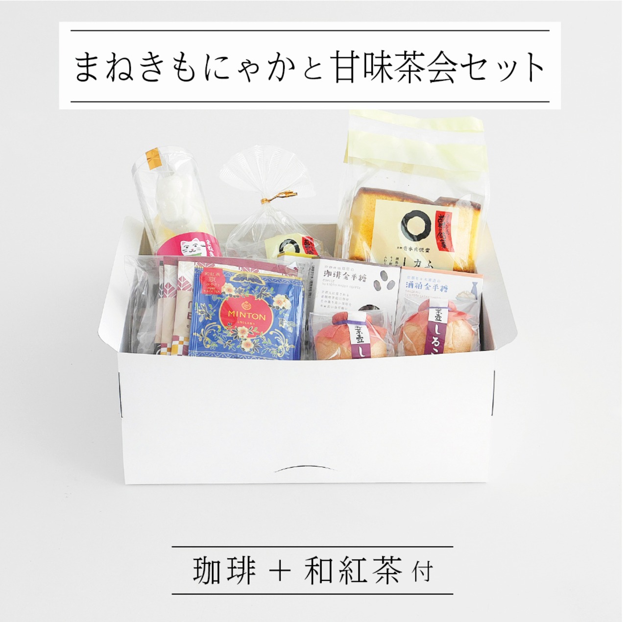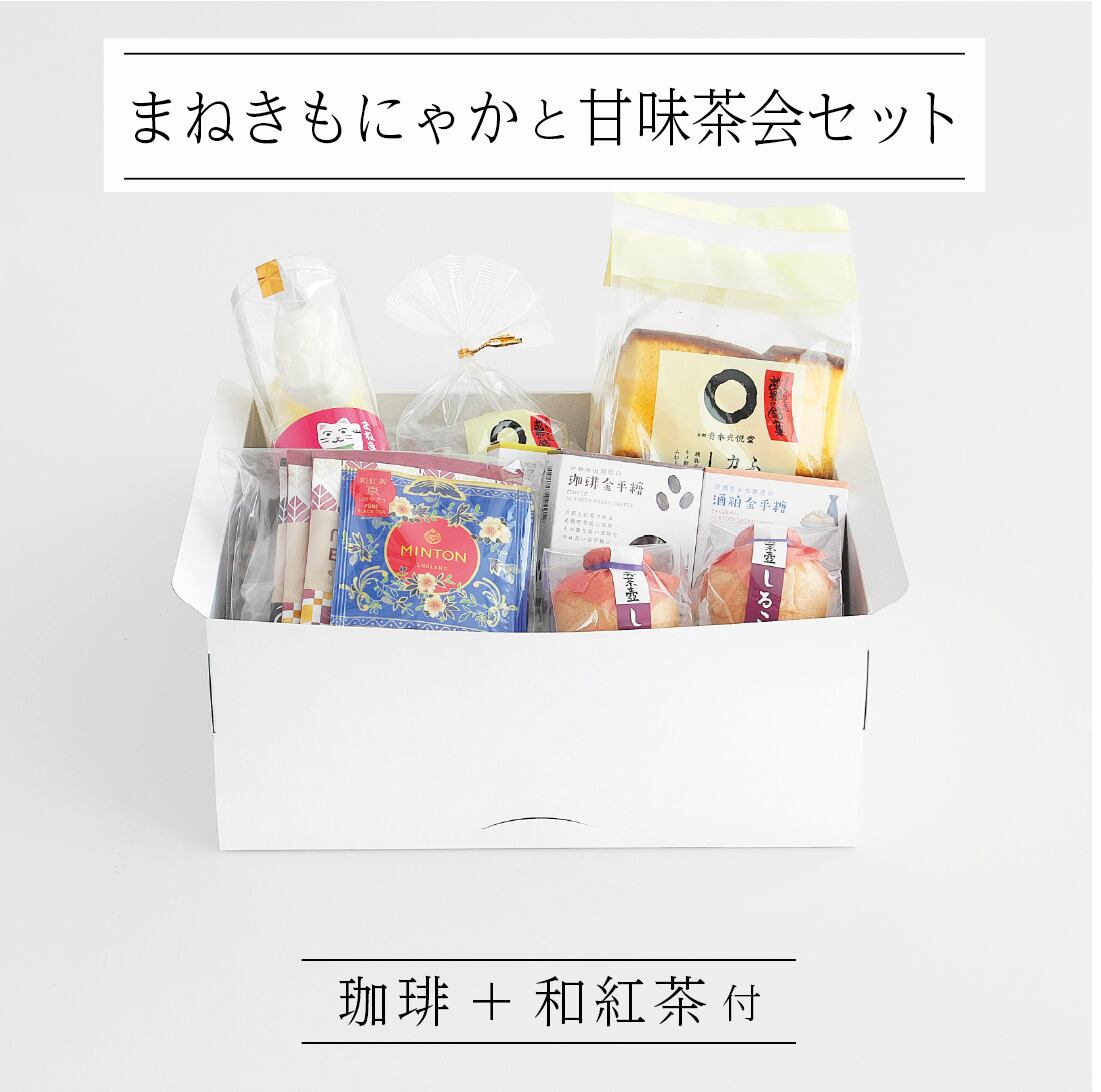 ■まねきもにゃか:最中種(招き猫) ◇もち米(国産)、最中種(百両小判)もち米(国産)/着色料(黄4) ◇北海粒餡:砂糖(国内製造)、小豆(北海道産)/グリシン ※本製品の製造工場では、卵・小麦・そば・落花生・乳成分・くるみを使用した製品を製造しております。■巾着松露:生あん(いんげん豆、小豆、えんどう豆)(国内製造)、砂糖、水飴、寒梅粉■お茶壺しるこ:砂糖(国内製造)、絹こし餡、和三盆糖、澱粉、もち米/ソルビット■ふわきぬカステラ:卵(国産)、砂糖、小麦粉、植物油脂、加糖練乳、蜂蜜、異性化液糖、リキュール/ソルビット、乳化剤、膨張剤、着色料(カロチン)、卵殻カルシウム、香料、(一部に卵・小麦・乳成分・大豆を含む) ※蜂蜜を使用していますので、1歳未満の乳児には与えないでください。■京都前田珈琲の珈琲金平糖:グラニュー糖(国内製造)、コーヒー、 コー ヒー粉末■京都佐々木酒造の酒粕金平糖 :グラニュー糖(国内製造)、酒かす■京都水尾の柚子金平糖 :グラニュー糖(国内製造)、柚子粉末■京都舞妓の茶本舗の抹茶金平糖:グラニュー糖(国内製造)、柚子粉末■ドリップコーヒー:【フレンチロースト】コロンビア産、ブラジル、他 【モカブレンド】エチオピア、コロンビア、他 ■京の和紅茶 京 (みやこ):紅茶(京都産)