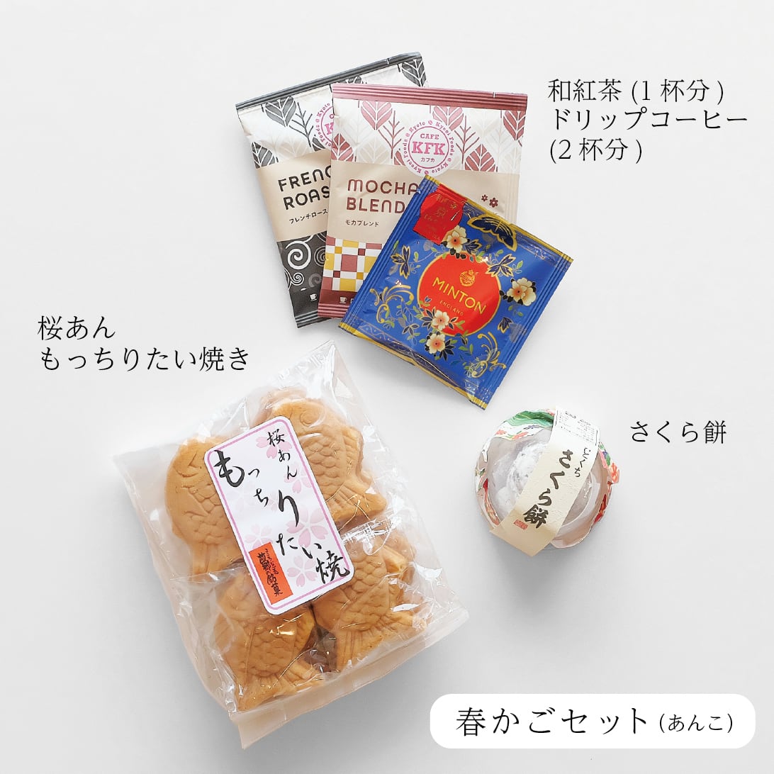 そんな春のシーンにそっと寄り添うのが、この 『花よりたい焼き!?春かごセット』