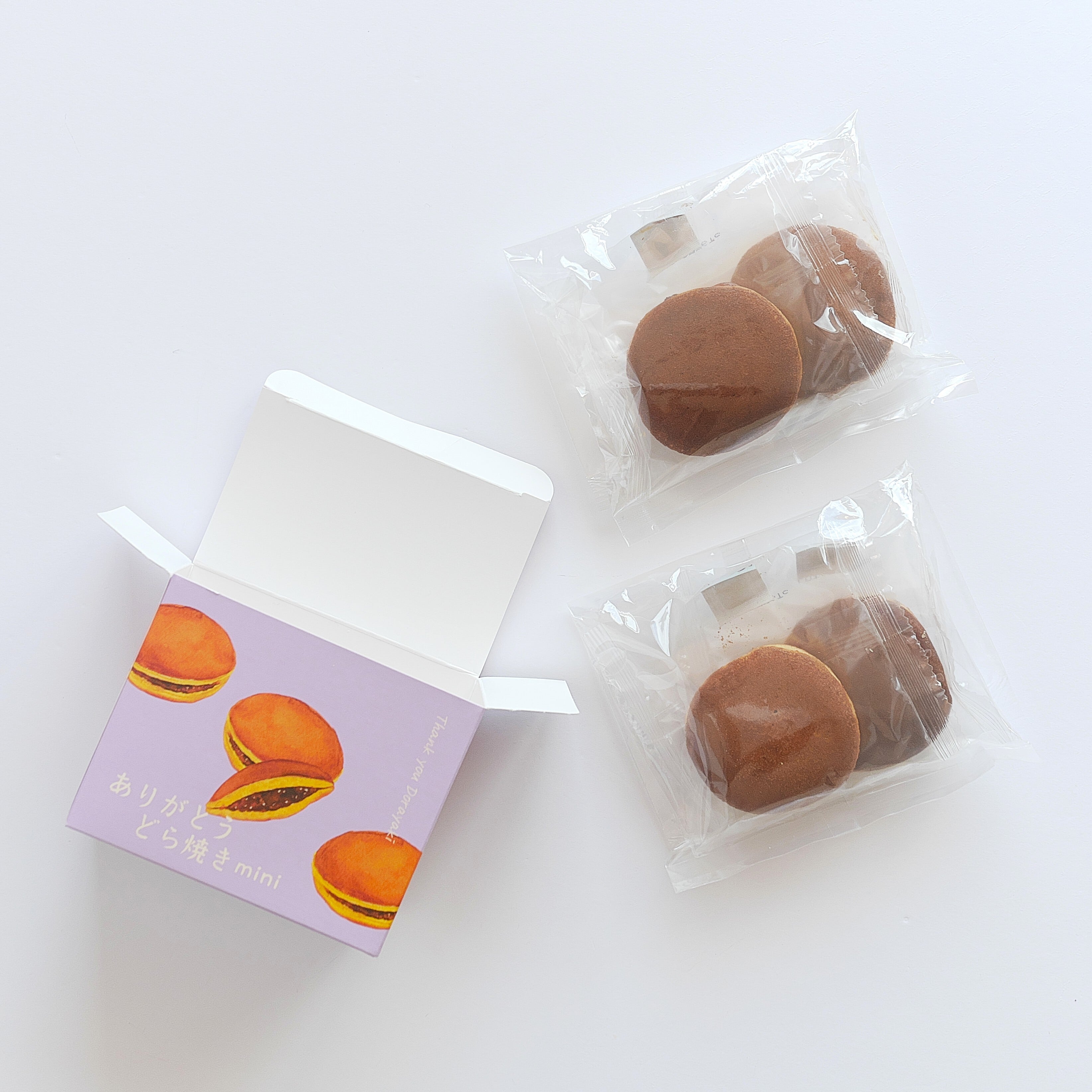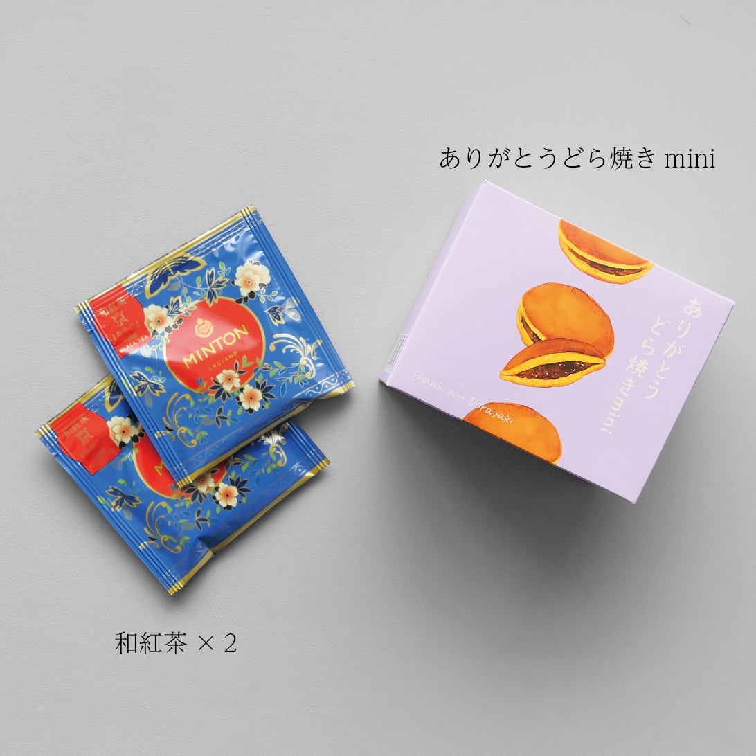 ■ありがとうどら焼き mini:砂糖(タイ製造)、鶏卵、小麦粉、小豆、還元水飴、植物油脂、米粉、味甚粉、蜂蜜、バター、ナチュラルチーズ、乳脂肪、粉末油脂、たんぱく質濃縮ホエイパウダー、バターパウダー/トレハロース、ソルビトール、加工でん粉、膨張剤、香料、乳化剤、(一部に卵・小麦・乳成分・大豆を含む)■京の和紅茶 京 (みやこ):紅茶(京都産)