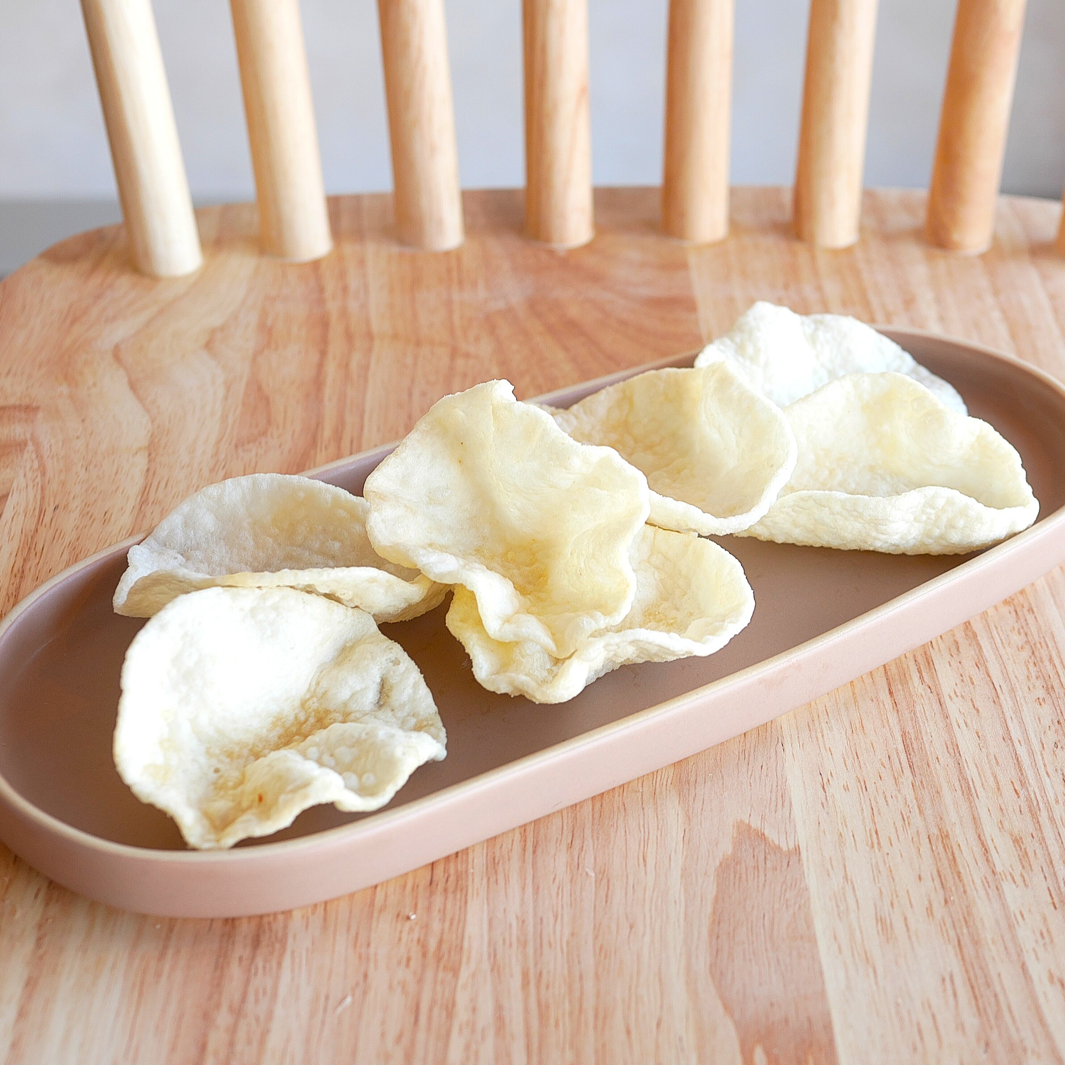 米油でカラッと揚げたサクふわ食感のおせんべい(うすしお味)