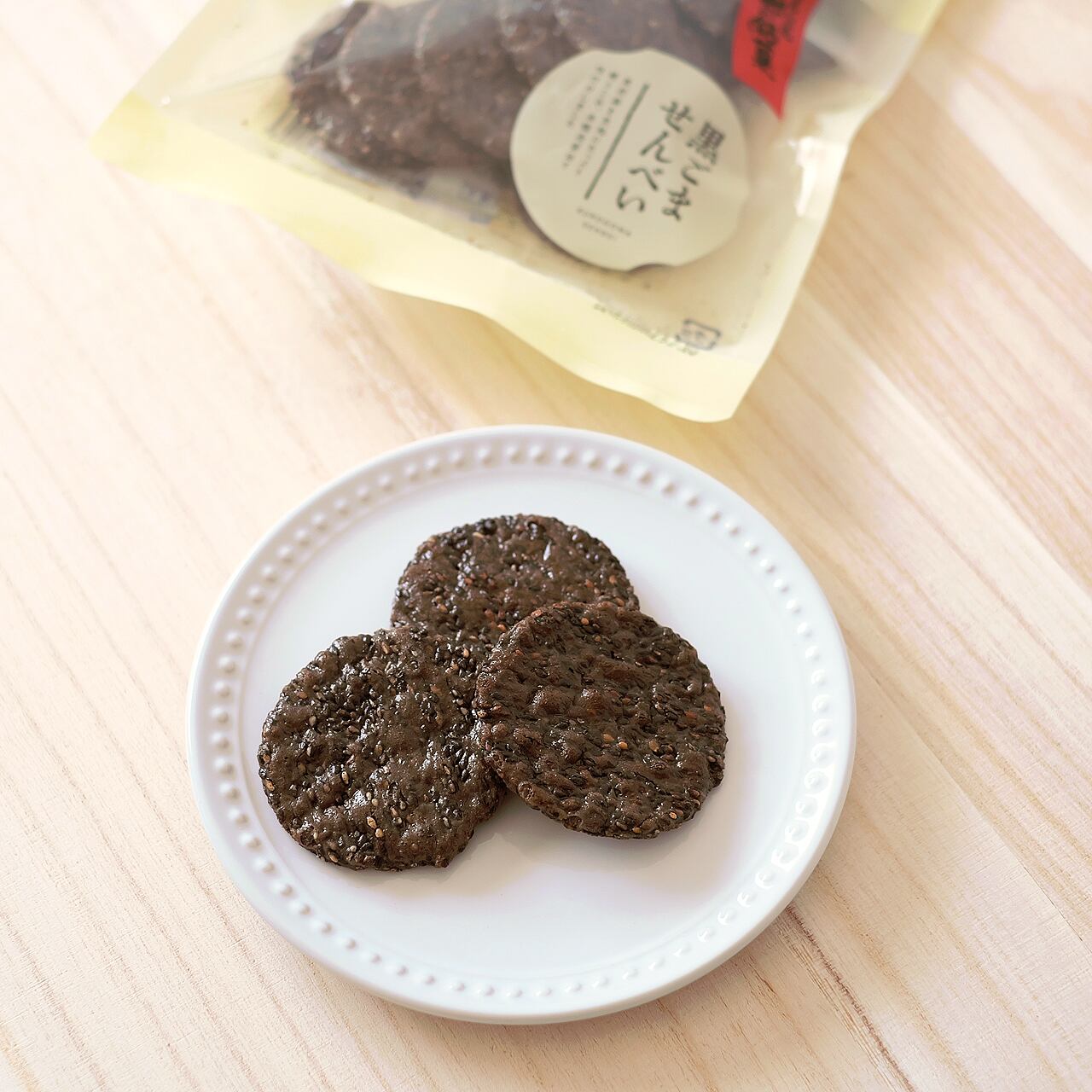 ※胡麻をたっぷり使用しているため、胡麻の油分により普通のおせんべいの様にカリっとしない場合があります。