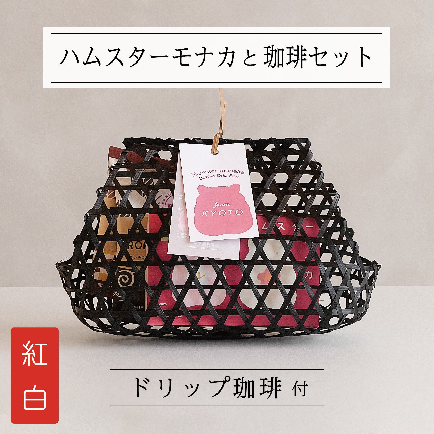 黒かごギフトセット(ハムスターモナカ+ドリップ珈琲)紅白
