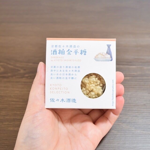 ・京都佐々木酒造の酒粕金平糖 30g(箱サイズ 70mm×70mm×25mm)